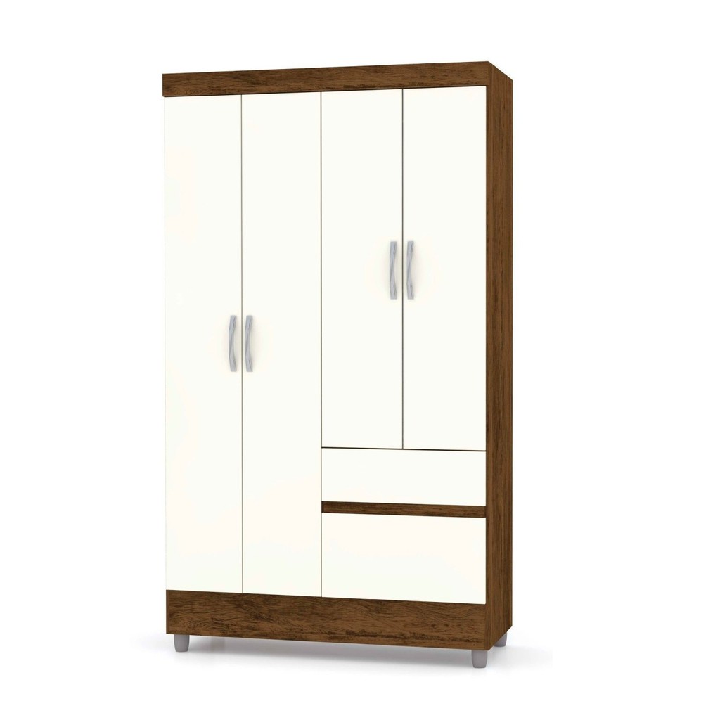Guarda-Roupa Solteiro 4 Portas 2 Gavetas Panama Imbuia/Champagne