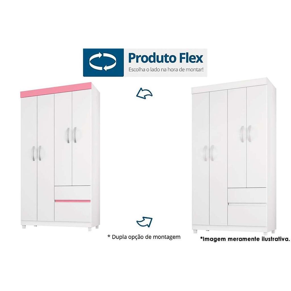 Guarda Roupa Solteiro 4 Portas e 2 Gavetas Lotus Flex Branco/Rosa - Demóbile