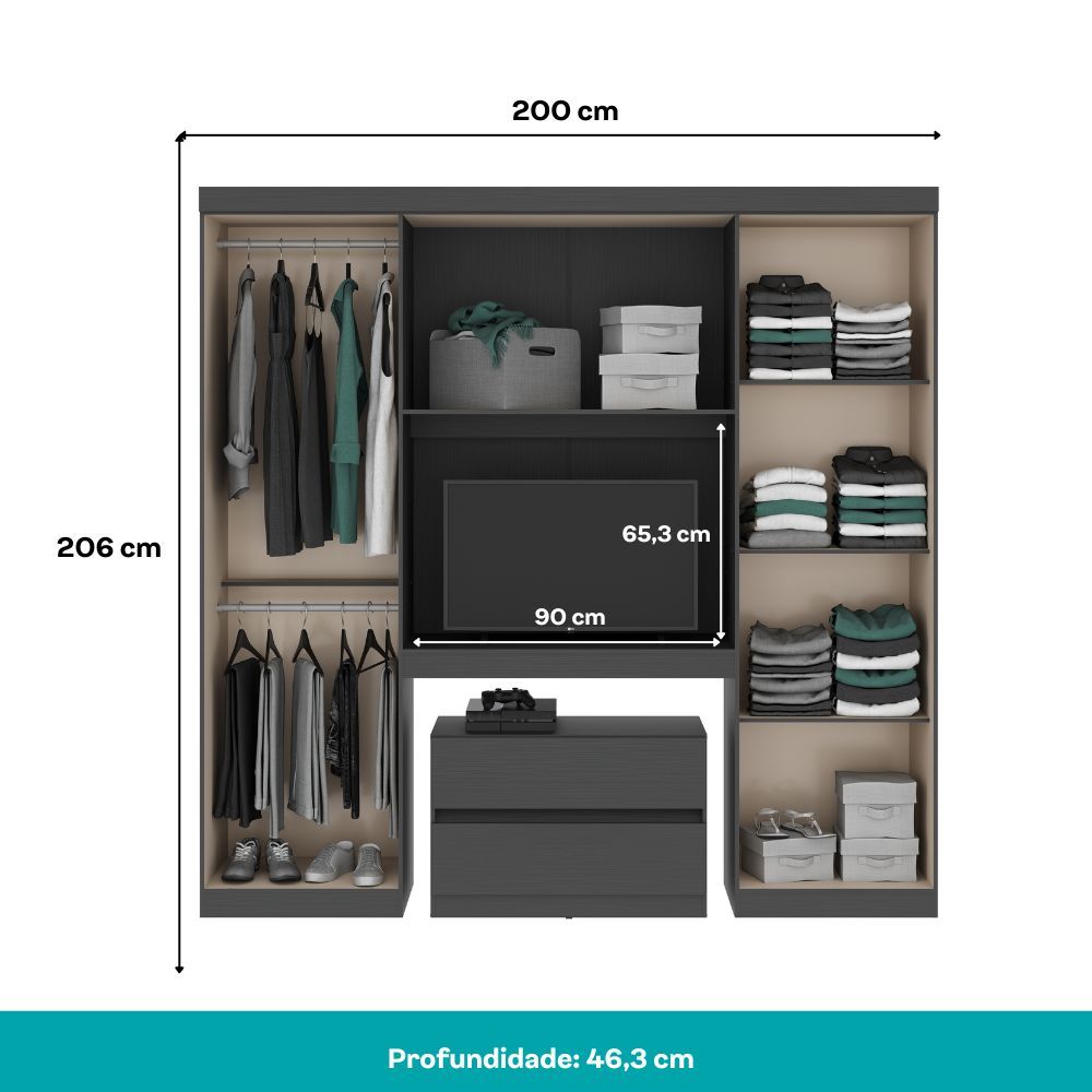 O Guarda-Roupa Porto 837, com suas 6 portas e design flexível, se adapta perfeitamente às suas necessidades. Feito com MDP de 15 mm e robustas dobradiças de 26 mm, garante durabilidade e segurança. Organize-se com seus 5 prateleiras e 6 nichos espaçosos, suportando até 6 kg cada. Seu diferencial está na montagem personalizável: transforme-o em um elegante painel de TV, uma prática mesa de escrivaninha ou até mesmo uma charmosa cabeceira de cama. Com rodapé para estabilidade, puxadores em ABS e um gaveteiro solto para maior versatilidade, este guarda-roupa combina estilo e funcionalidade em um único produto. Especificações do Guarda Roupa: Medidas totais: Largura: 200 cm | Altura: 206 cm | Profundidade: 46,3 cm Peso total: 99,9 Kg Garantia: Os produtos possuem garantia de 03 meses (se usado em condições normais), contra defeito de fabricação, ou componentes utilizados. Esta garantia não cobre defeitos por uso inadequado ou abusivo, falta de cuidados e desbotamento natural dos revestimentos. Condições de perda da garantia: - Mau uso ou manuseio incorreto. - Desbotamento causado pela exposição direta da luz solar. - Danos causados por agentes da natureza, como inundações ou acidentes de qualquer espécie. - Uso indevido de produtos abrasivos para realizar a limpeza. - Decurso do prazo estabelecido. Recomendações para uma boa conservação: - Dicas para limpeza e conservação do seu produto, você encontrará no esquema de montagem que o acompanha. Informações importantes: - Trabalhamos para apresentar imagens fiéis ao produto real. Porém, as cores podem sofrer variações de acordo com o monitor, iluminação do ambiente em que se encontram e até por sua percepção visual comparado ao ambiente residencial. - Desta forma, as imagens são meramente ilustrativas. - Todos os objetos decorativos não acompanham o produto. - O produto é enviado desmontado. - O produto acompanha manual com instruções para a montagem. - A empresa Móveis Carraro não realiza o serviço de montagem. PERGUNTAS FREQUENTES - Existem outras cores disponíveis? Sim, este produto possui outras cores disponíveis em outros anúncios. - Vocês entregam para todas as regiões do Brasil? De que forma é feita a entrega? Sim, entregamos para todas as regiões do Brasil. E a entrega é realizada por transportadoras parceiras. - Este produto é novo ou usado? Todos os nossos produtos são novos. E acompanham nota fiscal e certificado de garantia. - Recebo o produto montado? Não, este produto é enviado desmontado. Junto com ele é enviado manual com instruções para a montagem. - Vocês realizam a montagem do produto? Não possuímos o serviço de montagem.