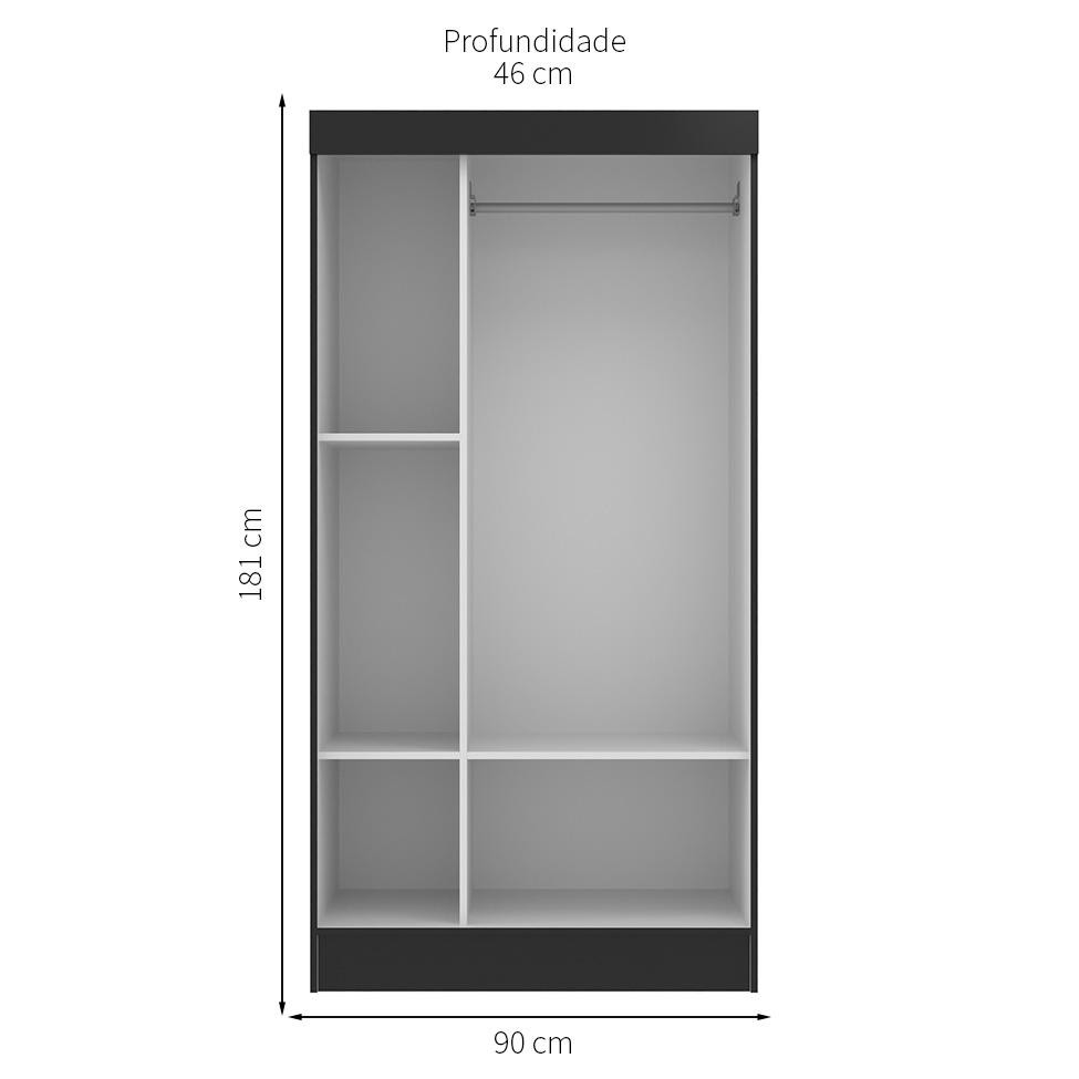 Que tal o Guarda-Roupa Berlim?Indispensável para a boa organização da casa, o Guarda-Roupa Berlim vai encher sua rotina de funcionalidade e deixar seu dia a dia mais prático. Com duas portas, ele é perfeito para atender às necessidades de uma pessoa, já que ajuda a organizar o vestuário da melhor maneira possível, desde as peças que precisam ir aos cabideiros até aquelas que podem ser dobradas. Enquanto isso, por fora, a coloração tradicional a esse tipo de móvel torna fácil combiná-lo com os outros itens no cômodo e te ajuda a montar o quarto dos sonhos. Daí, além de alcançar um ambiente bem decorado, você nunca mais vai perder tempo procurando aquelas peças específicas na hora de sair de casa. Tudo de bom, não é? Cor: Preto Garantia em Meses: 3 Cores do Produto: Preto Instruções/Cuidados: Limpar com pano seco Conteúdo da Embalagem: 1 Guarda-Roupa - Entregue em: 1 Volume Modelo: Berlim Número de Volumes: 1 Material: O Guarda-Roupa possui estrutura em MDP 12mm, 2 portas de correr com trilho de metal, fundo em MDF 3mm, cabideiro em pinus e acabamento em laca Material para Filtro: MDP Descrição do Tamanho: Altura: 181 cm | Largura: 90 cm | Profundidade: 46 cm Altura do Produto (cm): 181 Largura do Produto (cm): 90 Comprimento do Produto (cm): 46 Peso do Produto (Kg): 51 Produto precisa de Montagem?: Sim, sugerimos a contratação do nosso serviço de montagem (para os CEPs em que o serviço está disponível) ou de algum profissional experiente de sua preferência Tipo de Guarda-Roupas: Solteiro Número de portas: 2 Número de gavetas: Sem gavetas Título do Vídeo: Guarda-Roupa Solteiro Berlim 2 PT Tipo de pé: Não se aplica Material da dobradiça/trilho da porta: Metal Material da estrutura: MDP Material do cabideiro: Pinus Material do fundo: MDF Material do puxador: Plástico Necessita fixação na parede: Não Possui chaves: Não Possui espelho/vidro: Não Tipo da Corrediça da gaveta: Plástica Tipo de Porta: Correr Material do Tampo: MDP Material dos pés: Não se Aplica PROFUNDIDADE x LARGURA x ALTURA: 46 x 90 x 181 Fornecedor: Evidência Móveis Ltda Baterias são necessárias?: Não Certificação de teste externa: Não Componentes incluídos: Não Is Fragile: Não Número da peça: Não Inclui Manual de Montagem: Sim