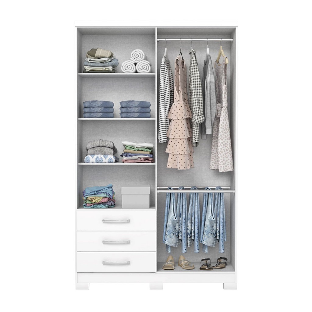 Guarda-Roupa Solteiro Caju 4 Portas e 3 Gavetas com Espelho Branco - Henn