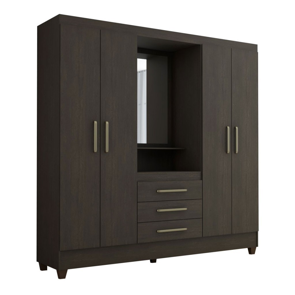 Guarda-Roupa Solteiro Capelinha 4 Portas 3 Gavetas com Espelho ébano - Panorama Móveis