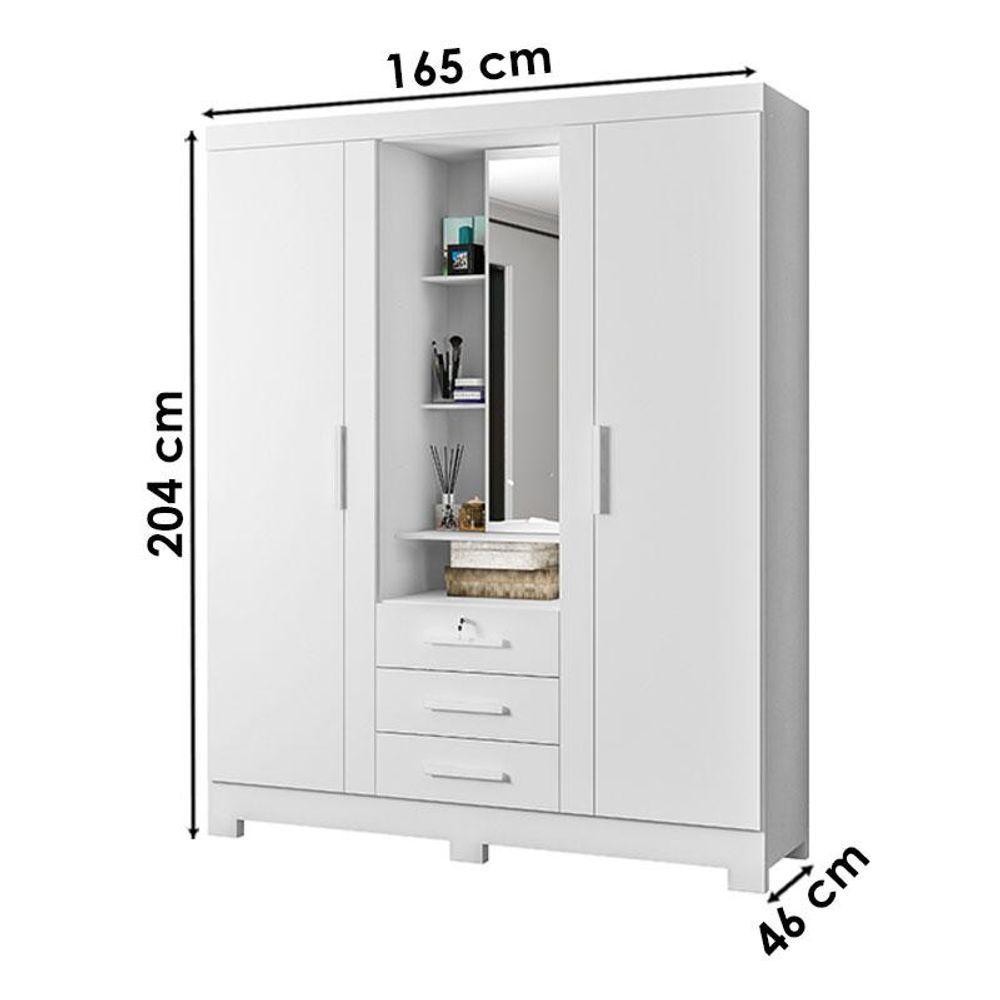 Guarda Roupa Solteiro Capelinha Premium 3 Portas Branco - Zanzini Guarda Roupa Solteiro Capelinha Premium 3 Portas Branco Zanzini O Guarda Roupa da linha Capelinha com 3 portas e 3 gavetas externas foi desenvolvido pela Zanzini com materiais de alto padrão oferecendo resistência e durabilidade ao móvel e com amplo espaço e divisões para lhe proporcionar toda praticidade que você irá precisar na hora da organização. Seu design diferenciado e moderno oferece ao ambiente sofisticação e elegância. Não perca tempo e garanta já o seu! Características Técnicas: - Produzido em MDP - Pintura na cor Branco - Acabamento em U.V semi fosco - 3 Portas - Porta central com espelho - Dobradiças metálicas - 3 Gavetas com corrediças metálicas - 1 Gaveta com chave - 3 Nichos laterais para decoração - 1 Nicho maior - Puxadores de MDF - Cabideiros de madeira plastificado - 4 Divisórias com amplo espaço - Calceiro - Pés de plásticos - Lindo design Dimensões: Altura: 204 cm Largura: 165 cm Profundidade: 46 cm * Atenção: Não realizamos a montagem ou instalação do produto, porém acompanha manual de instruções. * Importante: Imprescindível a conferência no ato da entrega. Em caso de anormalidade, recuse.