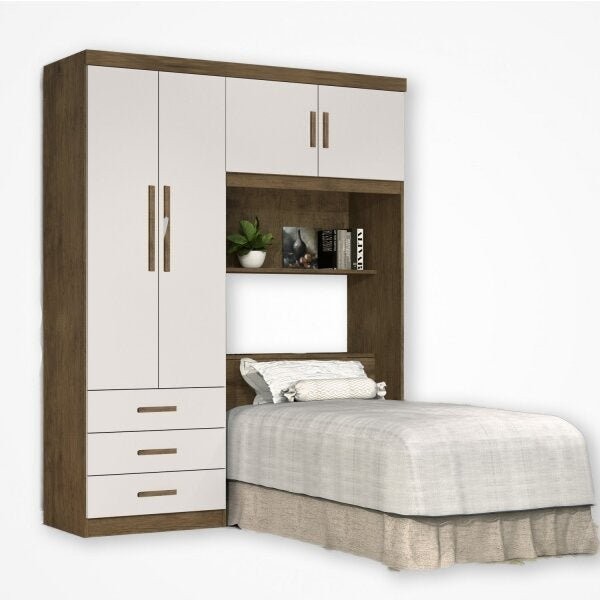 Guarda-Roupa Solteiro com Cabeceira 4 Portas Cancun Imbuia/Off White