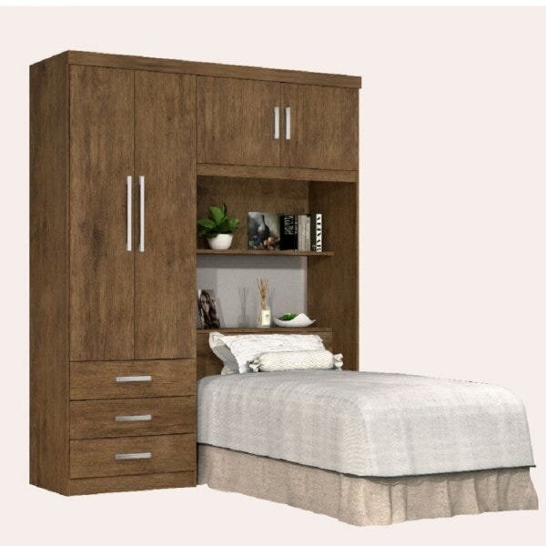 Guarda-Roupa Solteiro com Cabeceira 4 Portas Cancun Jequitibá/Avelã