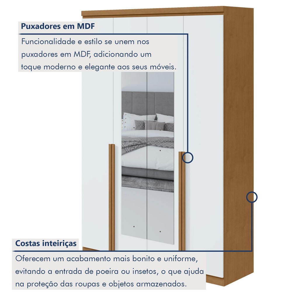 Guarda Roupa Solteiro com Espelho 4 Portas 2 Gavetas Alonzo 100% MDF Amêndoa Clean/Branco