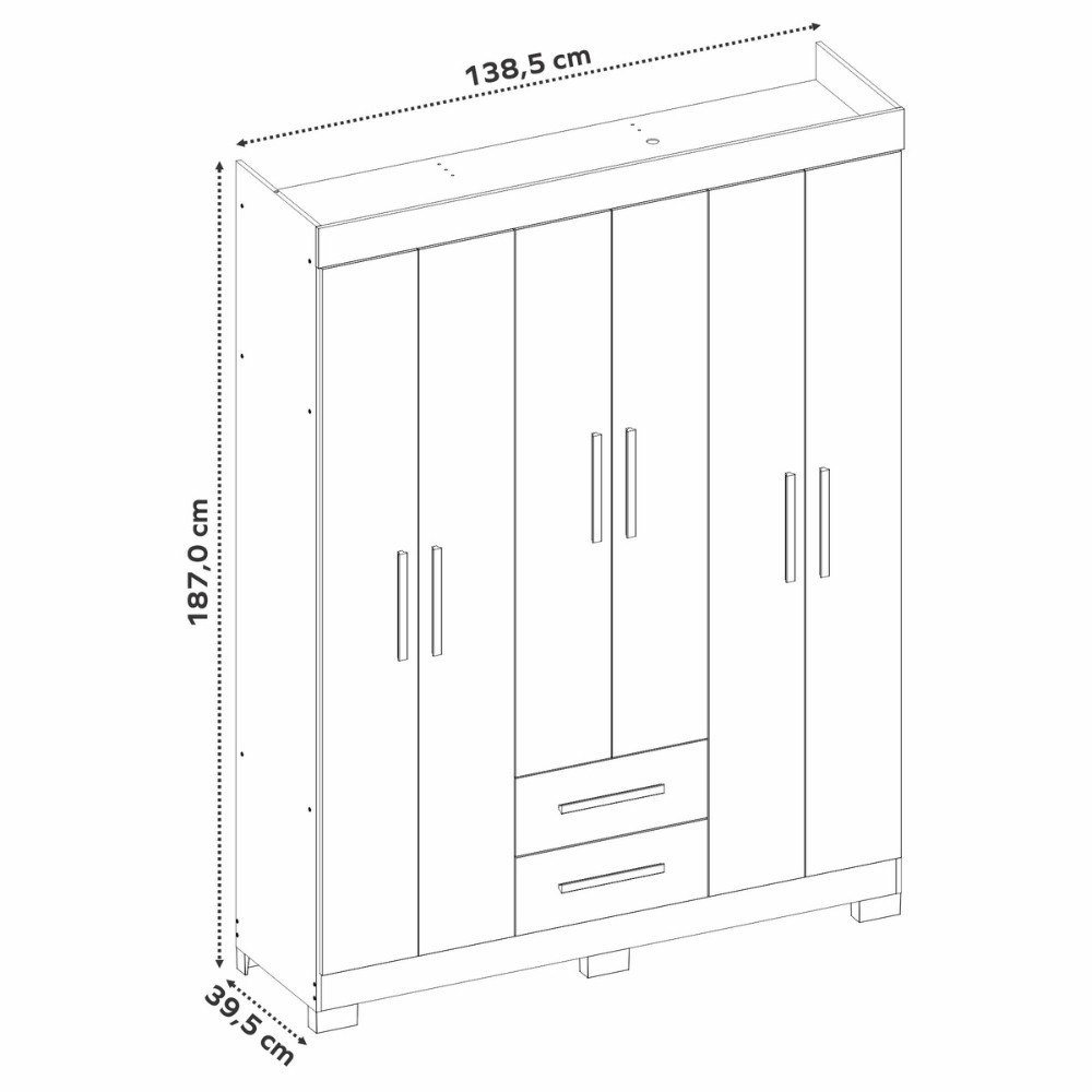 Guarda Roupa Solteiro com Pés 6 Portas 2 Gavetas NT 6015 Notável Móveis
