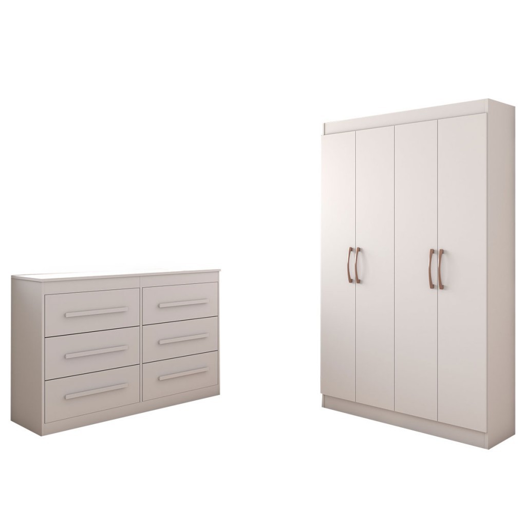 Guarda-Roupa Solteiro Europa 4 Portas e Cômoda 6 Gavetas - Panorama Móveis