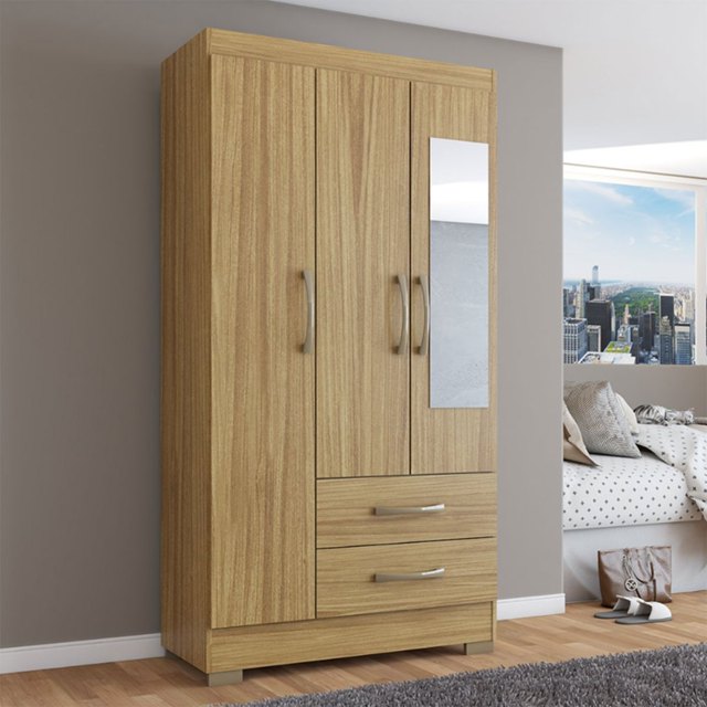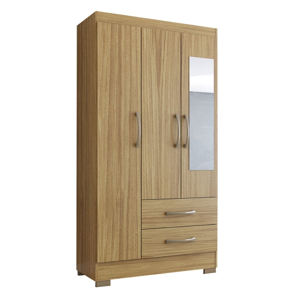Guarda-Roupa Solteiro Florença 3 Portas 2 Gavetas com Espelho Rústico - Pnr Móveis