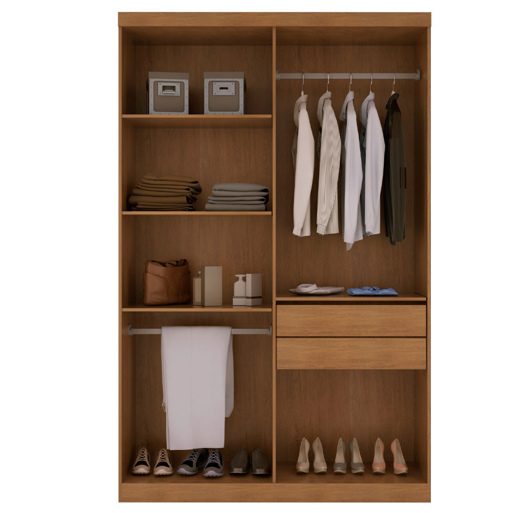 Guarda Roupa Solteiro Heros 4 Portas e 2 Gavetas MDF Moderna O Guarda-Roupa Heros com 4 portas é a escolha perfeita para quem aprecia um visual clássico e elegante. Produzido 100% em MDF, ele combina durabilidade com um design sofisticado. O espaço interno é cuidadosamente dividido, permitindo uma organização prática de suas roupas e objetos. Com 4 portas, 2 gavetas com corrediças telescópicas de fácil abertura, dois cabideiros e compartimentos ideais para armazenar calçados, o Heros oferece funcionalidade completa! Características: Material da Estrutura: 100%MDF Tipo de Acabamento: Pintura UV Material das Corrediças: Telescópica Material dos Cabideiros: Alumínio Dimensões do Roupeiro: Largura: 121 cm Altura: 200 cm Profundidade: 47 cm Peso: 73,07 kg Garantia do Fornecedor: 3 meses Informações Importantes: As tonalidades das cores podem sofrer alteração de acordo com a configuração de cada monitor. Os objetos que ambientam as fotos não acompanham o produto. Não disponibilizamos a montagem do produto. Não nos responsabilizamos por danos no produto causado por montagem. Favor verificar o produto no ato da entrega e em caso de problemas decorrentes no transporte (arranhados, quebra, batida, amassados) deve-se efetuar a ressalva na nota fiscal para conhecimento da transportadora e comunicar imediatamente a loja. Moderna Mobília reserva o direito de alterar as especificações técnicas sem prévio aviso. As medidas contidas no site podem sofrer variações de acordo com a montagem, tipo de costura etc. Verifique as dimensões do produto e certifique-se que o percurso que ele fará até o local de uso permite sua passagem. Não está incluso no serviço de entrega o deslocamento até o interior do apartamento (com ou sem elevador) ou deslocamento em locais de difícil acesso, como escadarias. Caso o cliente necessite de entrega dentro desses padrões, deve entrar em contato com a Loja responsável para verificar. Se autorizado pela portaria do condomínio, as entregas são feitas no piso térreo, e é o cliente que se responsabiliza por levar a mercadoria até o próprio apartamento. As tonalidades das cores podem sofrer alteração de acordo com a configuração de cada monitor. Os objetos que ambientam as fotos não acompanham o produto. Não disponibilizamos a montagem do produto. Não nos responsabilizamos por danos no produto causado por montagem. Verifique as dimensões do produto e certifique-se que o percurso que ele fará até o local de uso permite sua passagem. Para mais informações confira as políticas de entrega do site. Favor verificar o produto no ato da entrega e em caso de problemas decorrentes no transporte (arranhados, quebra, batida, amassados) deve-se efetuar a ressalva na nota fiscal para conhecimento da transportadora e comunicar imediatamente a loja. Moderna Mobília reserva o direito de alterar as especificações técnicas sem prévio aviso. As medidas contidas no site podem sofrer variações de acordo com a montagem, tipo de costura etc.