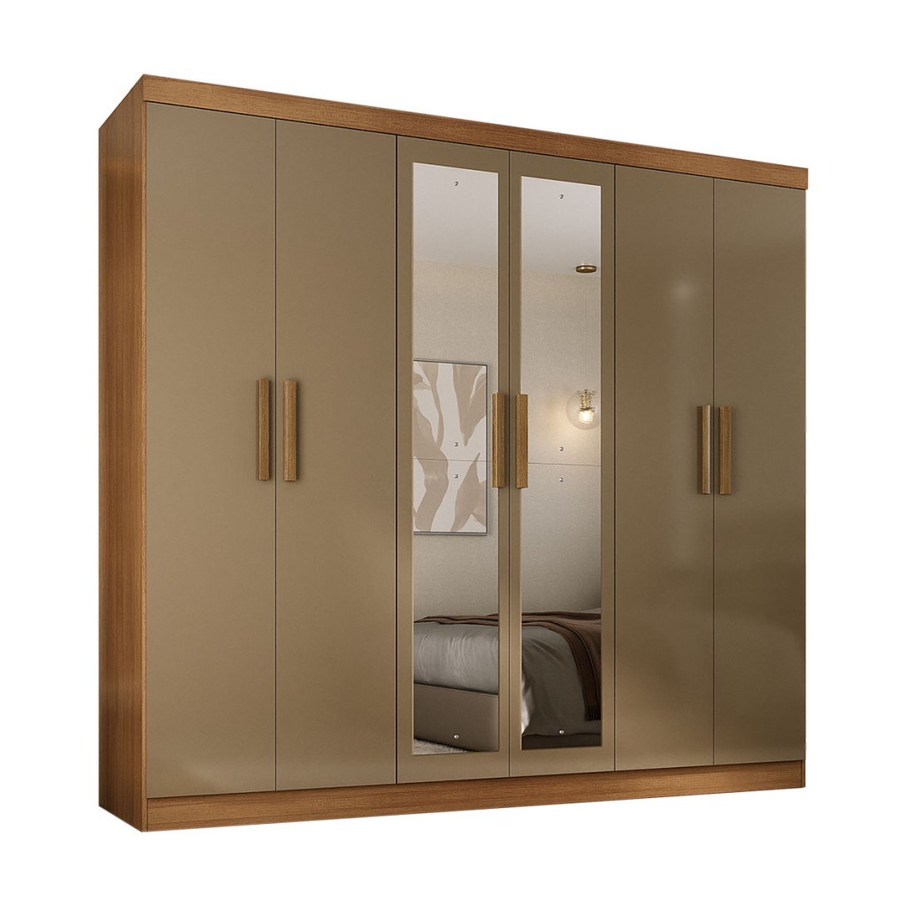 Guarda-Roupa Solteiro Lancaster 6 Portas 3 Gavetas 100% Mdf com Espelho Cinamomo/Cappuccino - Panorama Móveis