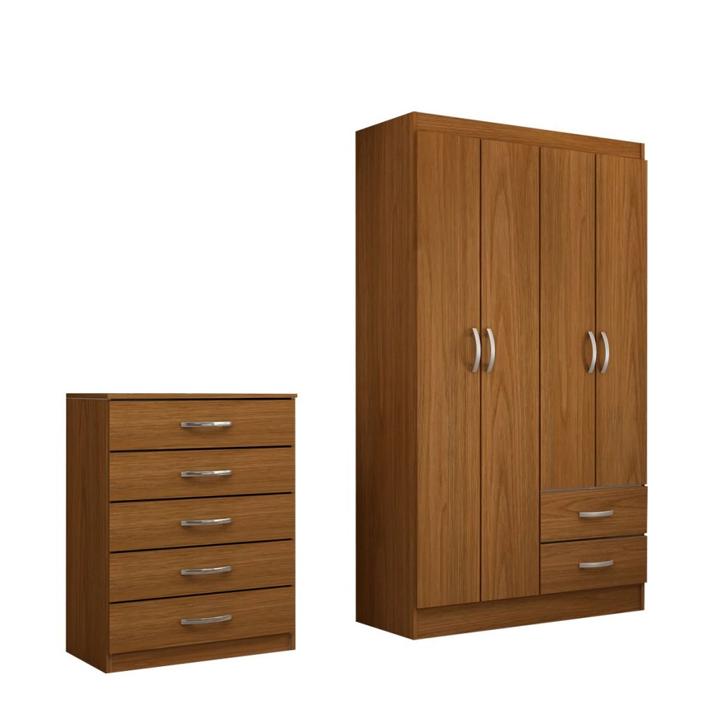 Guarda-Roupa Solteiro Lucy 4 Portas 2 Gavetas com Cômoda 5 Gavetas