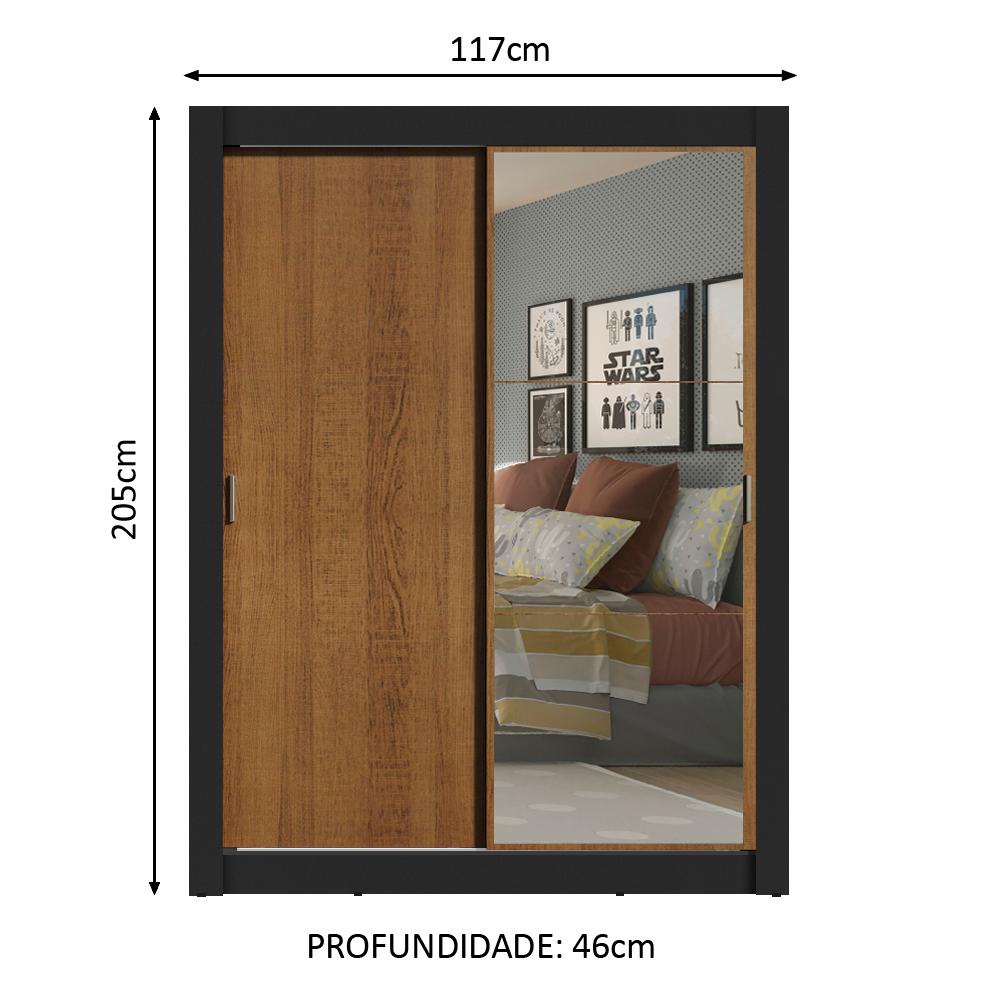 Guarda-Roupa Solteiro Madesa Denver 2 Portas de Correr com Espelho - Preto/Rustic