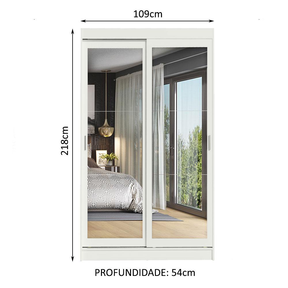 Guarda-Roupa Solteiro Madesa Tokio 2 Portas de Correr de Espelho 2 Gavetas - Branco