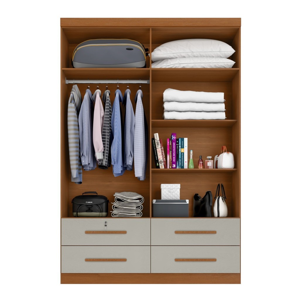 Guarda Roupa Solteiro Maximus Plus 4 Portas de Bater 4 Gavetas Cinamomo/Areia
