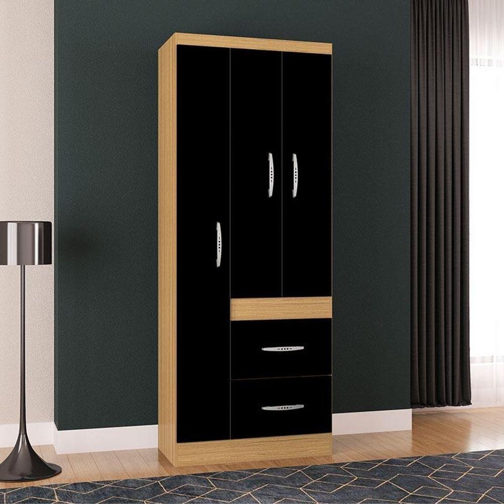 Guarda Roupa Solteiro Milão 3 Portas Damasco Preto - Poquema