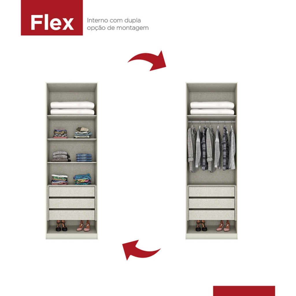 Guarda-Roupa Solteiro Modulado Predileto 2 Portas 3 Gavetas