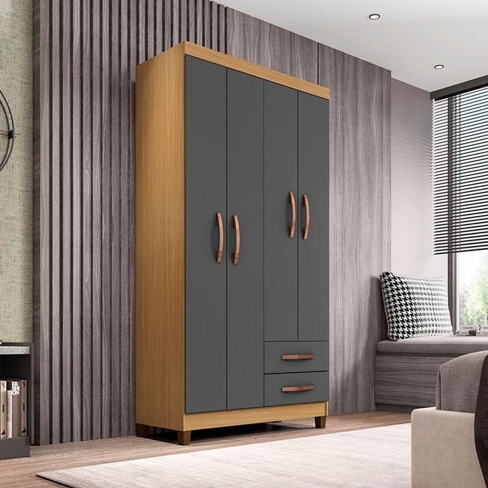 Guarda Roupa Solteiro Mogi 4 Portas Carvalho Americano Grafite - Incorplac