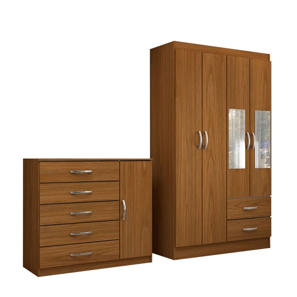 Guarda-Roupa Solteiro Noah 4 Portas 2 Gavetas com Cômoda 1 Porta 5 Gavetas