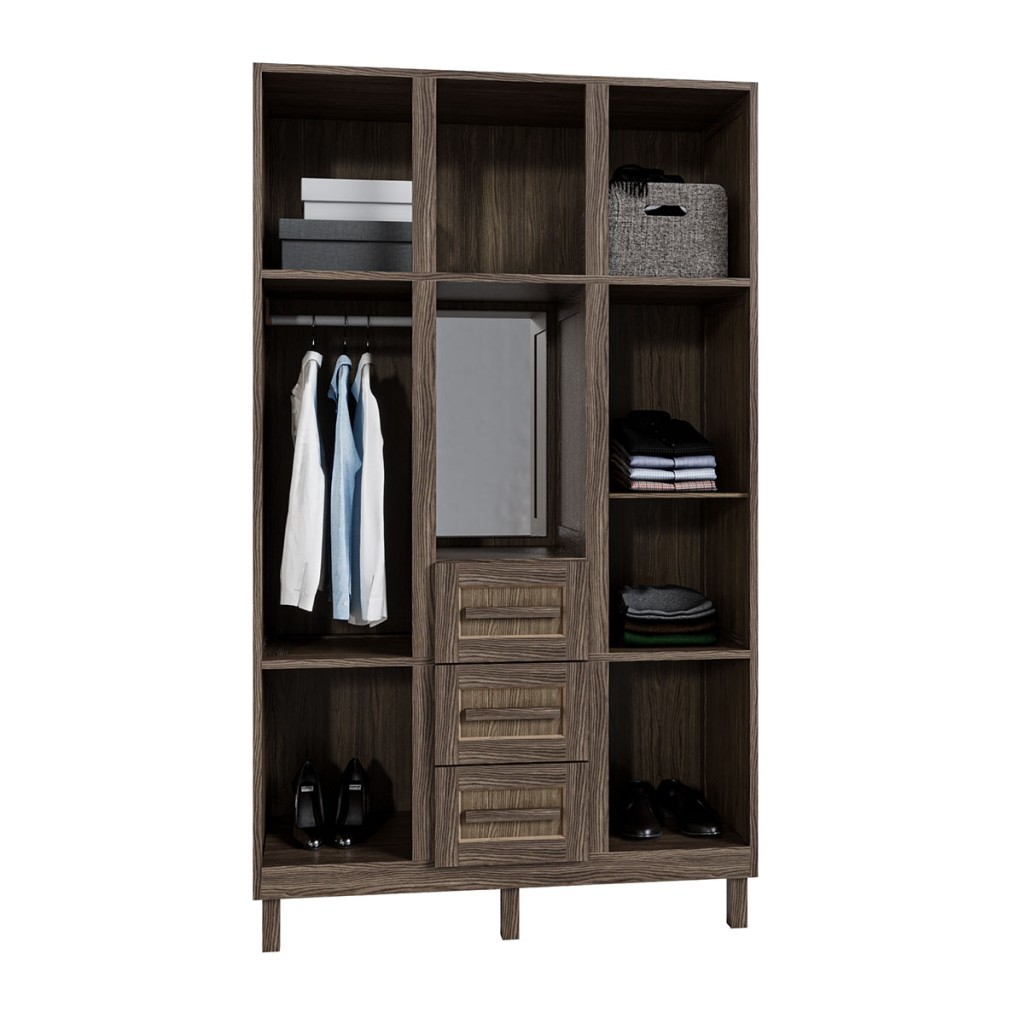 Guarda-Roupa Solteiro Pará 7 Portas 3 Gavetas 4 Prateleiras com Espelho Imbuia Natural - Rodmóveis