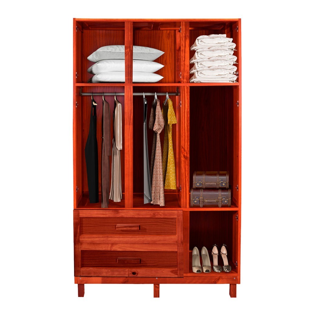 Guarda-Roupa Solteiro Petersburgo Madeira Maciça 7 Portas 2 Gavetas 2 Prateleiras com Espelho