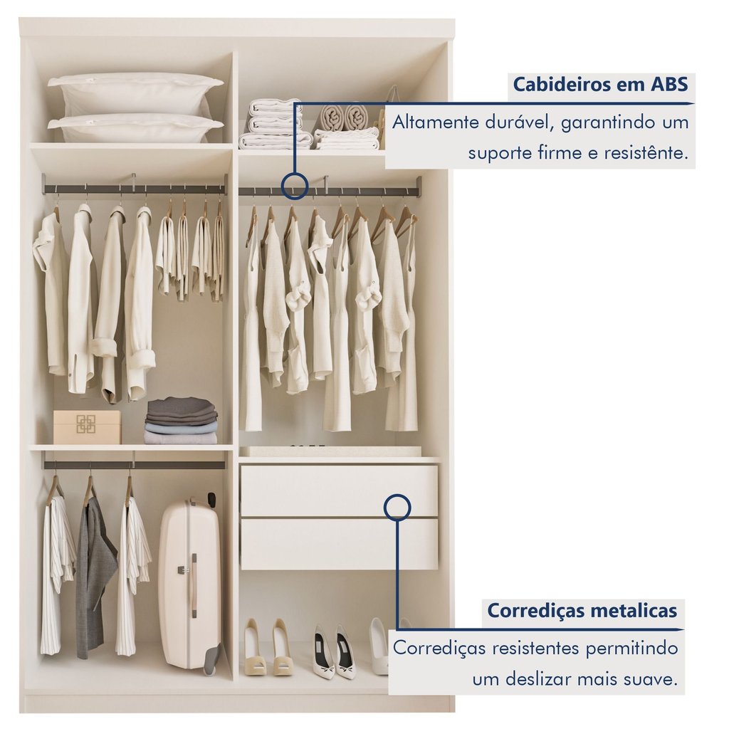 Guarda Roupa Solteiro Premium Salvador 138cm 2 Portas 2 Gavetas Espresso Móveis Branco