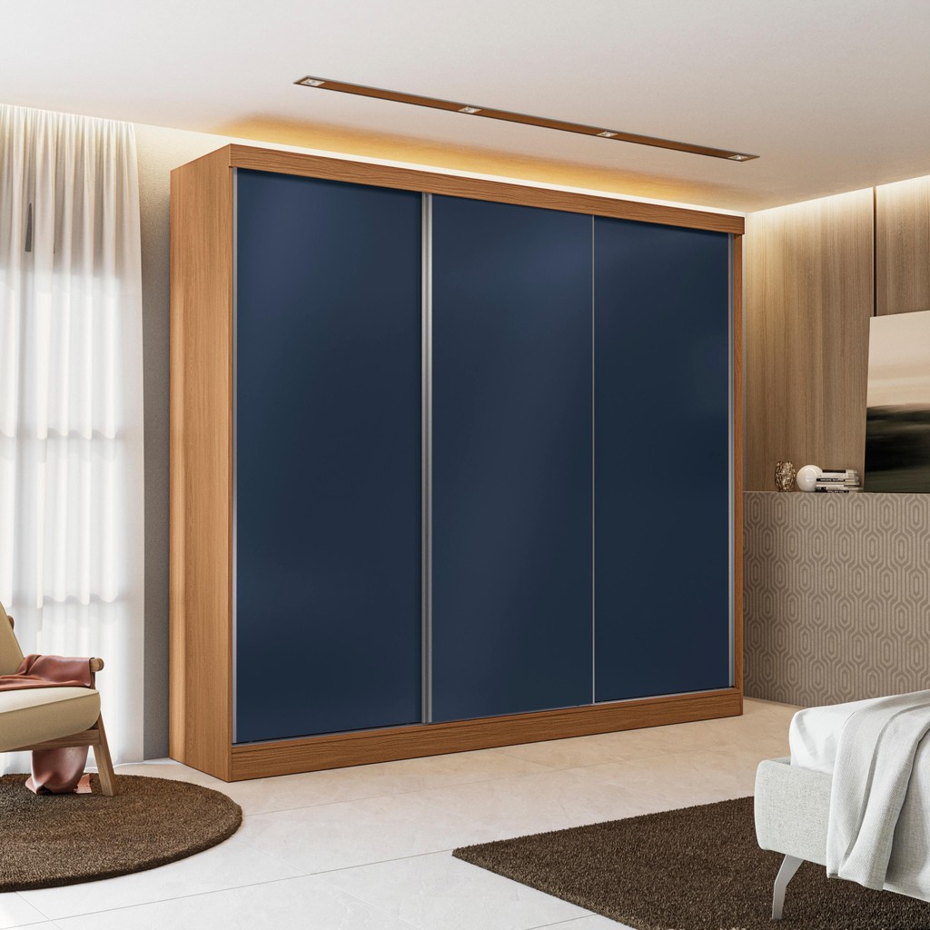 Deixe seu quarto ainda mais lindo, moderno e organizado com a linha de Guarda-Roupas 100% MDF R584 da Loja Oficial Kappesberg. Com o tamanho ideal para um quarto de casal, são 2,18m de altura, 2,45m de largura e 52cm de profundidade, todo produzido em chapa MDF de 15mm, o que garante mais robustez, durabilidade e um melhor acabamento. Com três portas de correr e quatro gavetas, o grande diferencial deste modelo fica por conta das portas reversíveis, podendo optar entre a cor canela ou azul profundo na hora de montar o seu guarda-roupa. Com pintura de sete camadas, tanto na parte interna quanto na externa, o acabamento brilho das portas garante beleza e facilidade no momento da limpeza, além de luminosidade ao espaço. E para uma combinação ainda mais linda, a caixaria é na cor canela em pintura touch, com a textura dos veios da madeira, trazendo a sensação de conforto e aconchego ao ambiente. E para quem gosta de muito espaço, esse é o modelo perfeito. Com divisões internas iguais dos dois lados, ele possui nichos de tamanhos diferentes, ideais para guardar calçados e roupas dobradas nas prateleiras. Os cabideiros, metálicos e com suporte interno, são perfeitos para peças maiores, como casacos e vestidos. E nas gavetas, com corrediças telescópicas, você organiza acessórios e peças menores com facilidade, deixando seu ambiente sempre organizado. Nas portas, o destaque fica para o puxador em alumínio e o perfil metálico anti-empeno, garantindo mais durabilidade e resistência, sendo a opção perfeita para renovar seu quarto com a qualidade, modernidade e beleza dos Móveis Kappesberg. * A cor das portas DEVE ser escolhida no momento da montagem, não podendo ser alteradas após isso. Informações importantes: Opte pela cor das portas antes de montar, depois de montado não é possível alterá-las; As imagens são meramente ilustrativas, não acompanha acessórios; Pode haver variação de cor de acordo com a calibragem da tela onde o produto está sendo visualizado; Todos nossos móveis são entregues desmontados; A montagem é sempre por conta do cliente (orientamos a contratação de um profissional qualificado, o manual de montagem acompanha o produto); O vídeo do produto pode ser genérico, então atente-se às imagens do anúncio para optar pela cor/modelo.