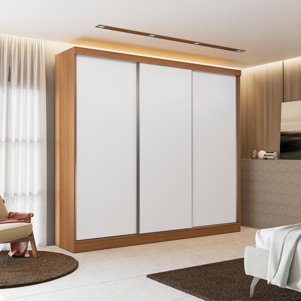 Guarda-Roupas 3 Portas de Correr Reversíveis Kappesberg Canela/Macadâmia