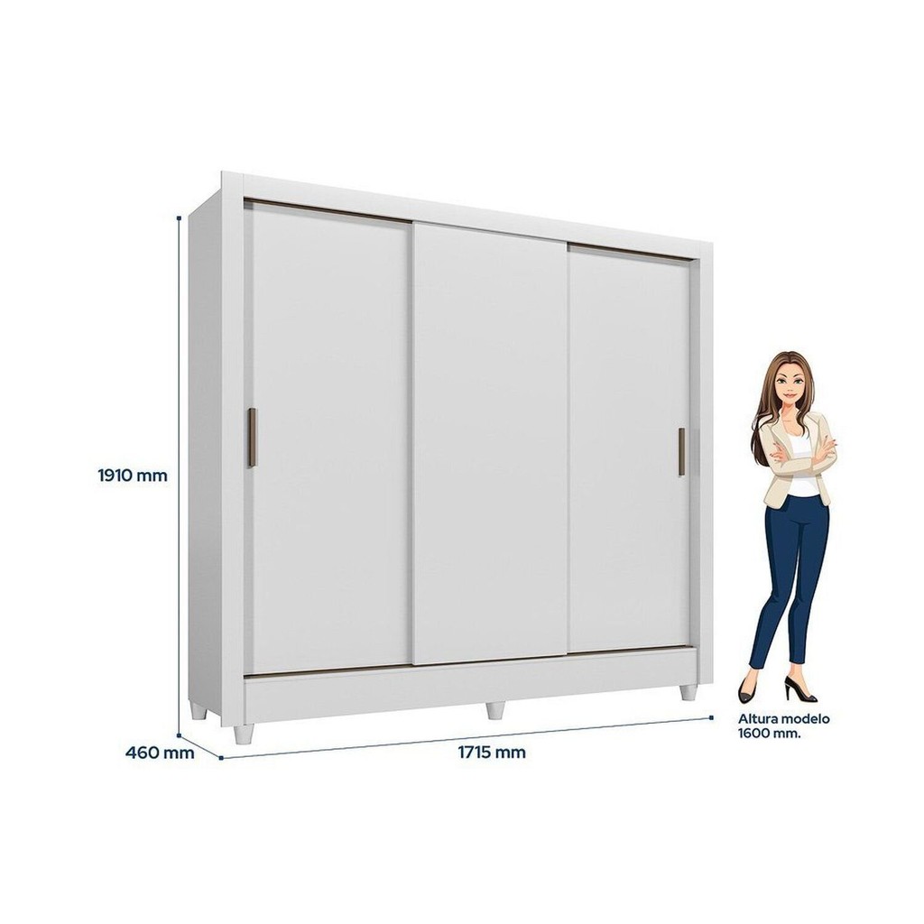 Guarda-roupas 3 Portas de Correr Roma Branco