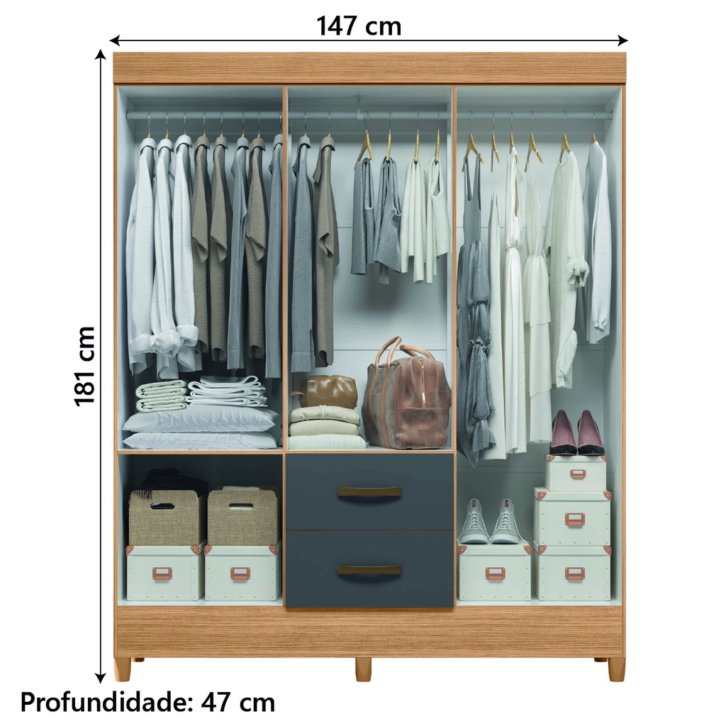 O Guarda Roupas Solteiro Mobi, e ideal para facilitar a organização no seu dia a dia, uma verdadeira combinação de estilo e funcionalidade para elevar o seu ambiente a um novo patamar! Conta 6 portas com repartições especiais que garantem a melhor organização, 2 gavetas e cabideiros resistente. Além de possuir pés resistentes em PVC que não agridem o chão! Feito com materiais de qualidade, promovendo maior durabilidade e resistência. MEDIDAS: [ A ] = 181 cm [ L ] = 147 cm [ P ] = 47 cm PESO SUPORTADO: 23kg PESO: 62,13kg PRATELEIRAS SUPORTAM ATÉ: 3kg GAVETAS SUPORTAM ATÉ: 3kg MODELO: Guarda Roupas Casal 6 Portas 2 Gavetas Mobi Albatroz MARCA: Albatroz COR: Nature / Grafite ACABAMENTO: Pintura UV MATERIAL DA ESTRUTURA: MDP ESPESSURA DO MATERIAL: 12mm PORTAS: 6 TIPO DE PORTA: Bater DOBRADIÇA: Metálicas GAVETAS: 2 CORREDIÇAS: Metálicas PRATELEIRAS: 2 MATERIAL DO PUXADORES: ABS CABIDEIROS: 3 MATERIAL DOS CABIDEIROS: Madeira MATERIAL DOS PÉS: PVC PÉS: 6 GARANTIA: 3 Meses A Esplanada Móveis se responsabiliza pela entrega dos produtos adquiridos até a porta de entrada ou portaria do endereço indicado, se a portaria do condomínio permitir, as entregas são efetuadas no piso térreo e é de responsabilidade do cliente a locomoção da mercadoria até seu apartamento ou casa. Confira as dimensões do produto e certifique-se de que estão adequadas aos elevadores, portas e corredores do local da entrega. Não fazemos a montagem, desmontagem do produto e/ou portas e janelas, transporte pela escada ou içamento pelo lado de fora do prédio. Não está incluso no serviço de entrega o deslocamento até o interior do apartamento, com ou sem elevador, ou deslocamento em locais de difícil acesso como escadarias.