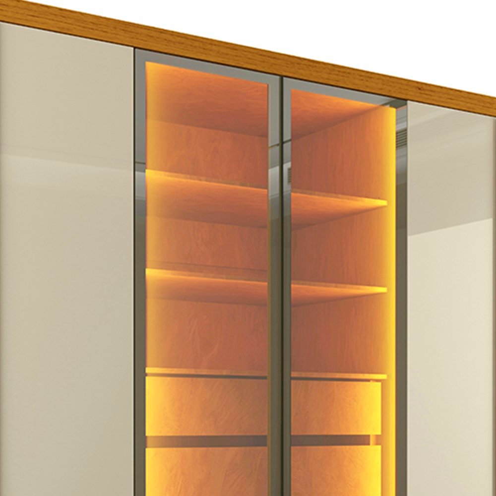 Guarda Roupas Casal 6 Portas com Pés e LED Absolut New Reflecta 100% MDF Naturale/Off White
