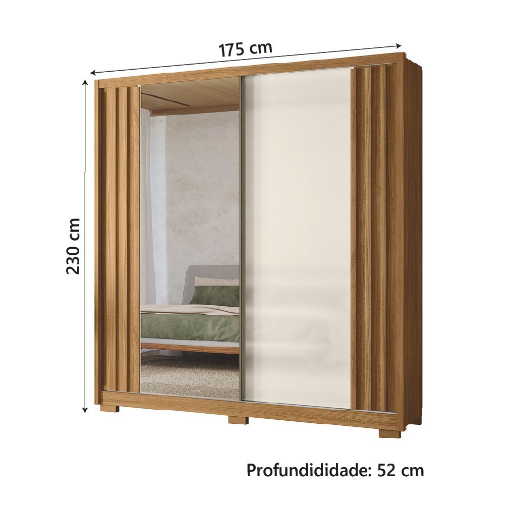 Guarda Roupas Casal Com Espelho Ripado 2 Portas de Correr 3 Gavetas Freijó/Off White Colorado Moval