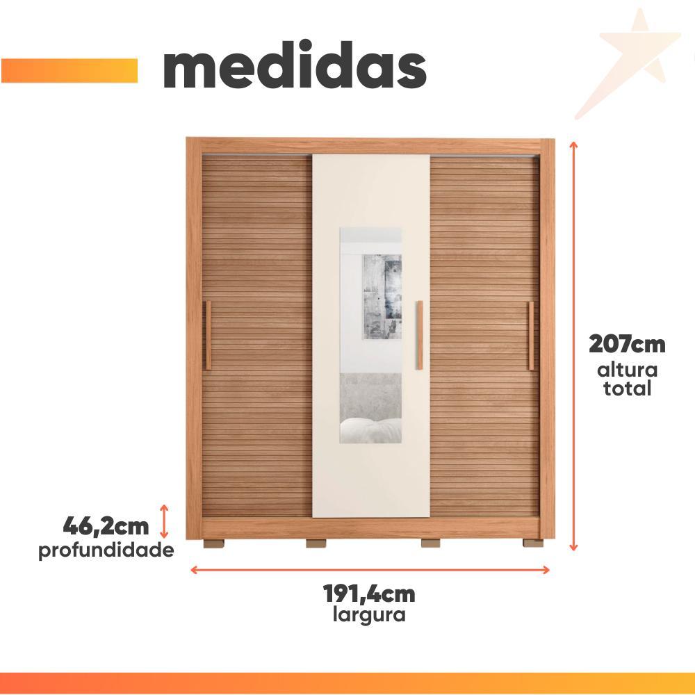 Guarda Roupas Casal com Espelho Ripado impressão 3D 3 Portas de Correr 2 Gavetas Paris Caemmun