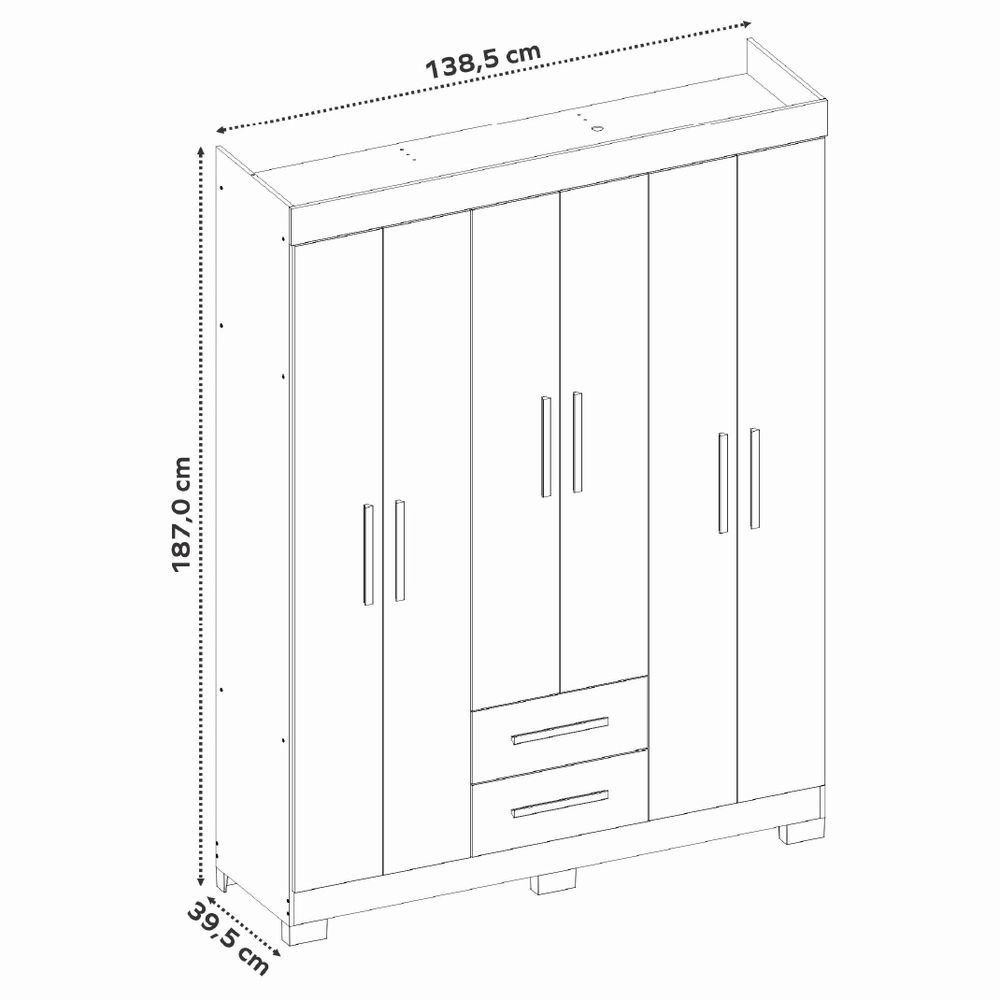 Guarda Roupas Casal Juvenil 6 Portas 2 Gavetas Líbano