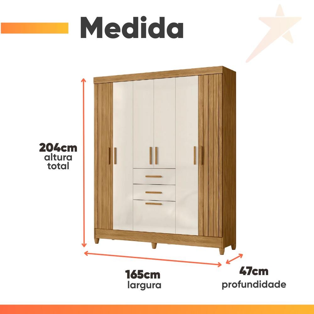 O Guarda Roupas Casal Malta é a solução perfeita para quem busca aliar estilo e funcionalidade. Com 7 portas - as duas laterais possuem detalhe ripado autêntico, trazendo modernidade - e 2 gavetas, oferece amplo espaço para armazenar roupas, cobertores, sapatos, acessórios e muito mais. Seu design inteligente permite a organização eficiente de roupas longas, graças aos cabideiros resistentes. Os puxadores são feitos de MDF, enquanto os pés de PVC proporcionam resistência e facilitam a limpeza. Confeccionado com materiais de qualidade garantindo maior durabilidade e resistência. MEDIDAS: A = 204 cm L = 165 cm P = 47 cm MEDIDAS DOS PÉS: A = 15 cm L = 11 cm P = 12 cm PESO: 90,85 kg PESO SUPORTADO: 54 kg PRATELEIRAS SUPORTAM ATÉ: 6 kg GAVETAS SUPORTAM ATÉ: 6 kg CABIDEIROS SUPORTAM ATÉ: 6 kg MODELO: Guarda Roupas Casal Ripado 7 Portas 2 Gavetas Malta MARCA: Moval COR: Madeirado / Off White PINTURA: UV ACABAMENTO: Fosco MATERIAL DA ESTRUTURA: MDP ESPESSURA DO MATERIAL DA ESTRUTURA: 12mm PORTAS: 7 TIPO DE PORTA: Bater DOBRADIÇAS: Metálicas GAVETAS: 2 CORREDIÇAS: Metálicas PRATELEIRAS: 4 CABIDEIROS: 3 MATERIAL DO CABIDEIRO: Alumínio PUXADORES: 9 MATERIAL DOS PUXADORES: MDF QUANTIDADE DE PÉS: 6 MATERIAL DOS PÉS: Plástico GARANTIA: 6 Meses ITENS INCLUSOS: 1 Guarda Roupa, 1 Manual de montagem, 1 Kit Parafusos INSTRUÇÕES E CUIDADOS: Para maior durabilidade, recomendável que a limpeza dos móveis seja feita com pano limpo e levemente umedecido em água e sabão neutro. Em seguida, deverá ser passado um pano limpo e seco. A Esplanada Móveis se responsabiliza pela entrega dos produtos adquiridos até a porta de entrada ou portaria do endereço indicado, se a portaria do condomínio permitir, as entregas são efetuadas no piso térreo e é de responsabilidade do cliente a locomoção da mercadoria até seu apartamento ou casa. Confira as dimensões do produto e certifique-se de que estão adequadas aos elevadores, portas e corredores do local da entrega. Não fazemos a montagem, desmontagem do produto e/ou portas e janelas, locomoção pela escada ou içamento pelo lado de fora do prédio. Não está incluso na entrega o deslocamento até o interior do apartamento, com ou sem elevador, ou deslocamento em locais de difícil acesso como escadarias. Caso o cliente necessite de entrega dentro das dificuldades mencionadas, deverá entrar em contato para análise e dúvidas. Certifique-se de tudo antes de finalizar a compra, evitando assim futuros desagrados ou imprevistos com a entrega.