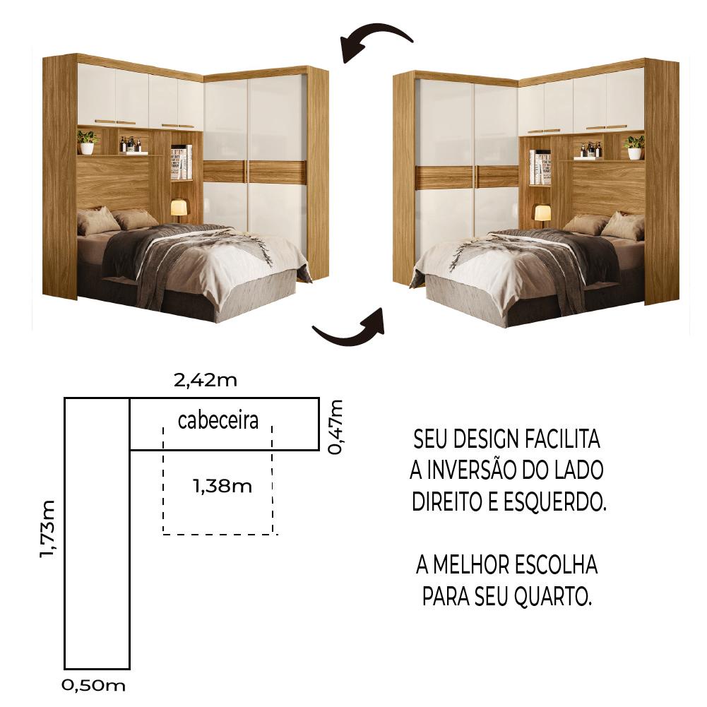 Guarda Roupas Modulado com Cabeceira de Casal Florença 6 Portas 5 gavetas Freijó/Off White Moval