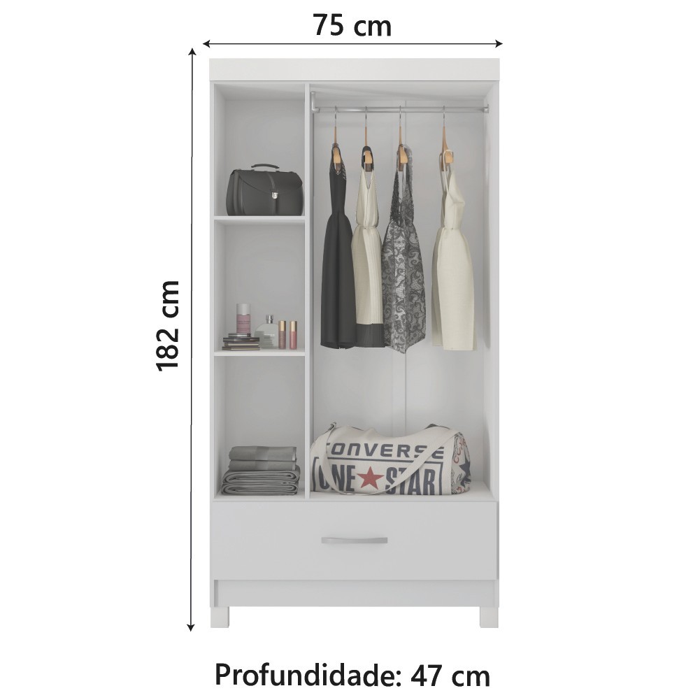 Guarda Roupas Solteiro 3 Portas 1 Gaveta Branco Prince Demóbile