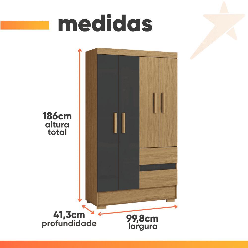 Guarda Roupas Solteiro 4 Portas 2 Gavetas Atacama / Grafite Coimbra Aramóveis