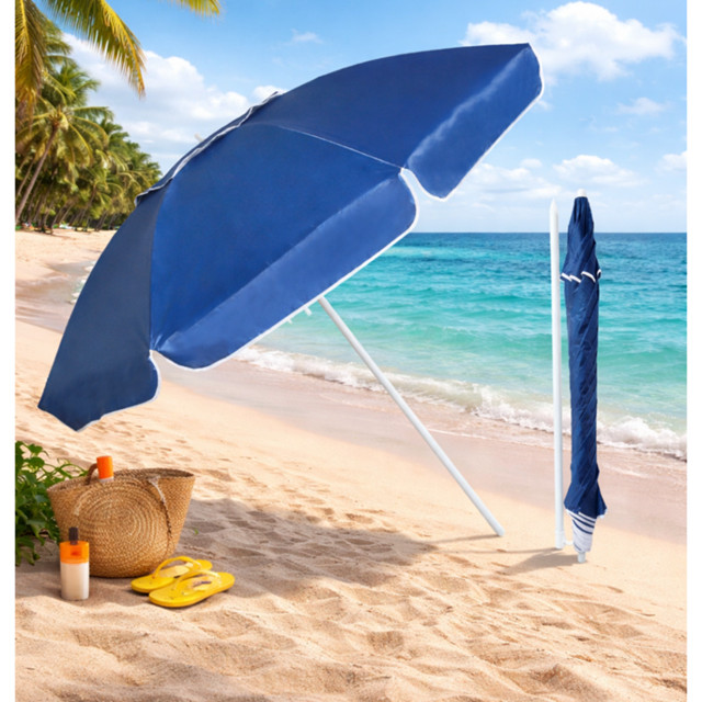 . BENEFÍCIOS: Cobertura em Poliamida com revestimento prateado (Silver Coating). Proteção real contra os raios solares: FPS 60. Diâmetro: 1.9 m Fechado: 1,10m Altura total: 2 m Material: Tecido Haste: 22 mm Proteção real contra os raios solares.