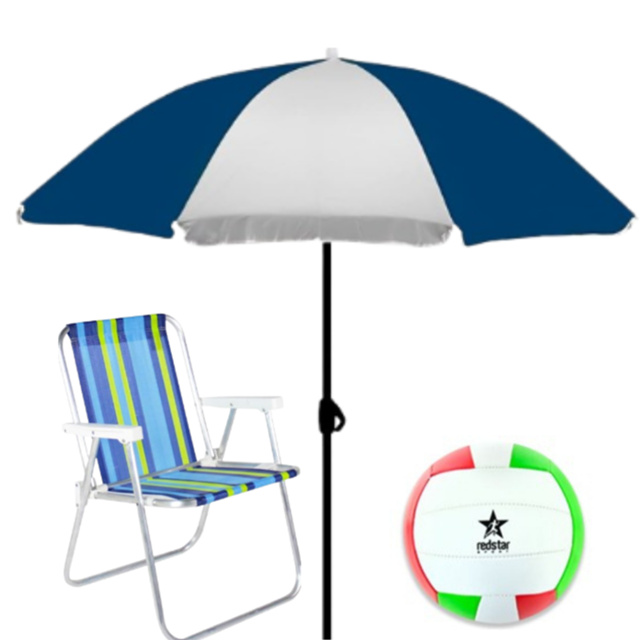 | Guarda Sol Azul Marinho 1,80 Mor + Cadeira + Bola De Vôlei este produto | R$ 237,00 | — | 5.0/5 | — |