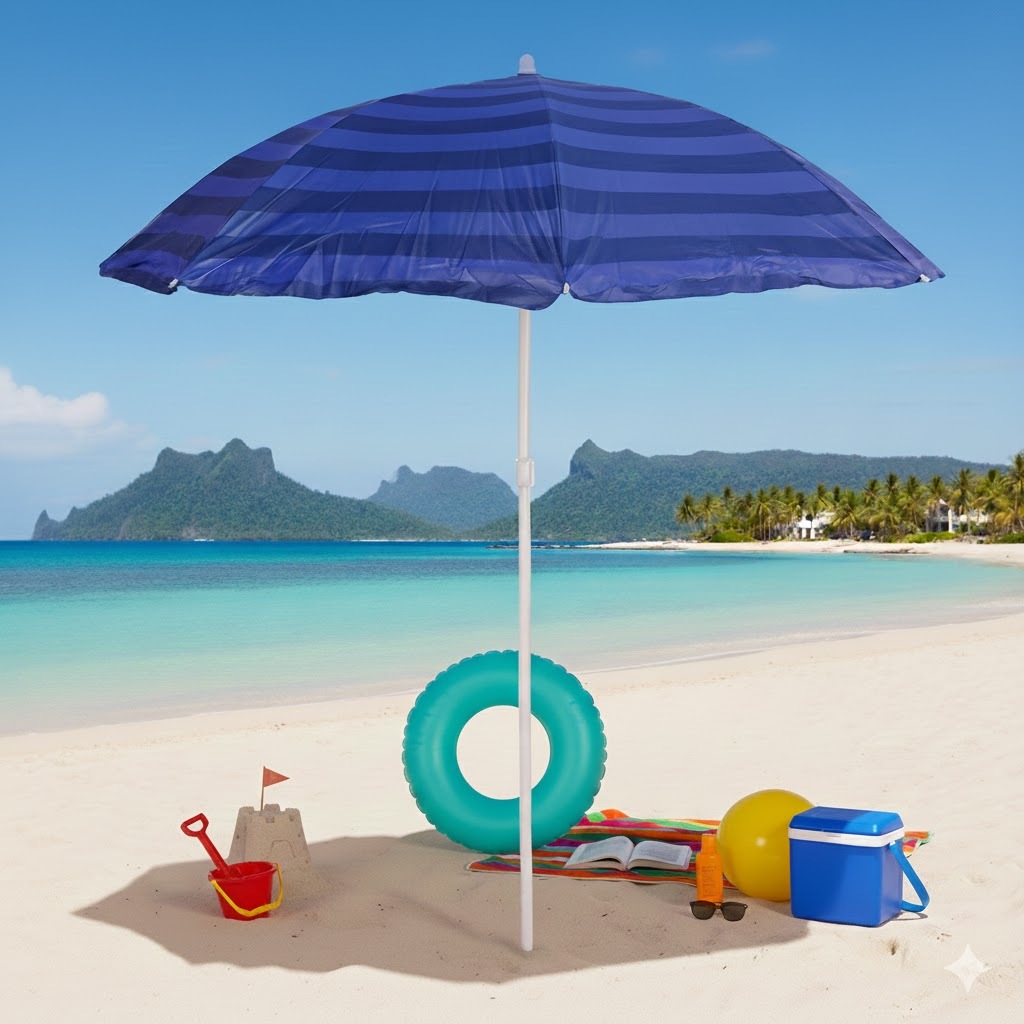 Guarda Sol Grande 1,8m Praia Piscina Verão com Teto de Nylon e Estrutura em Alumínio Azul Benoá