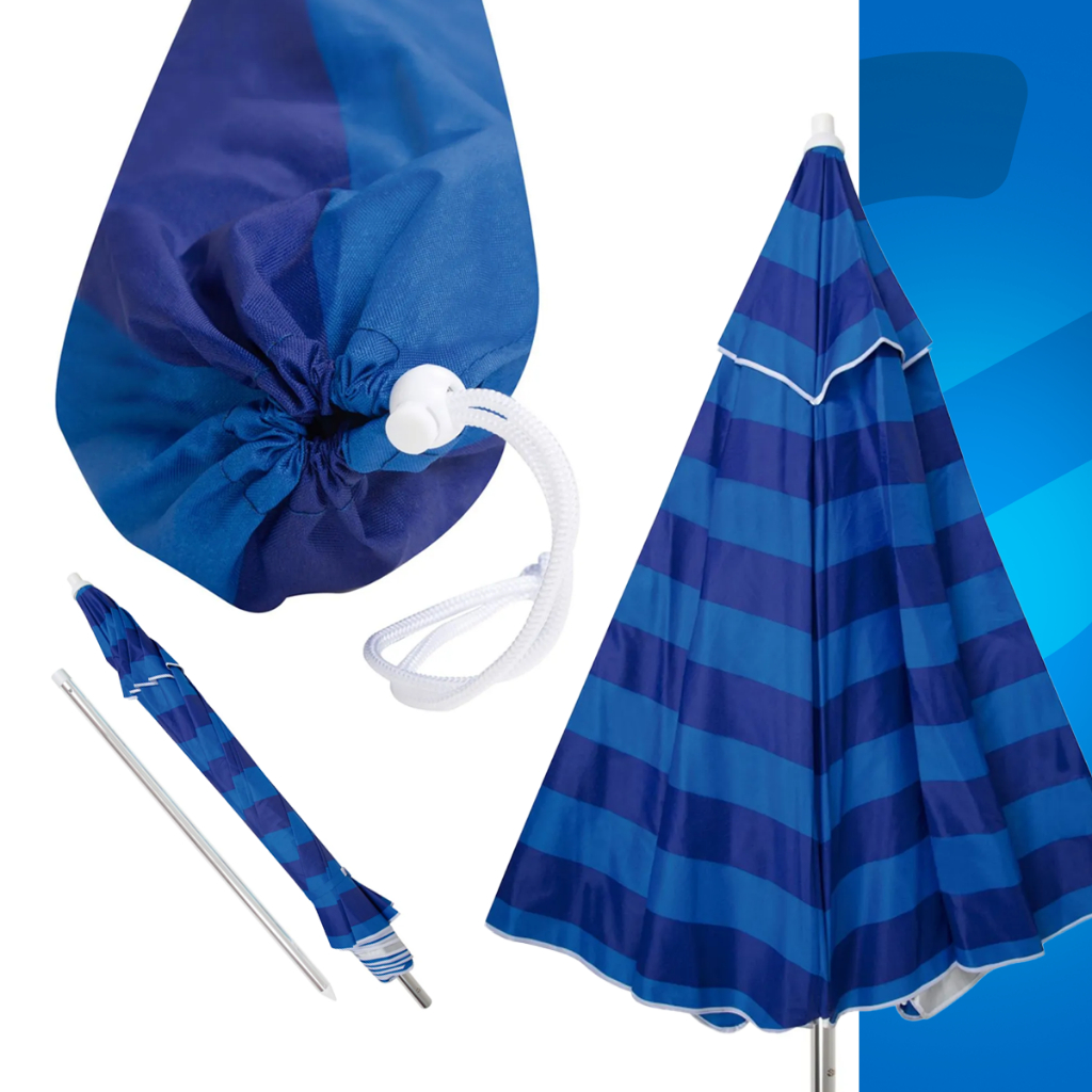 Guarda Sol Grande Articulado Praia Piscina Grande Haste Alumínio Azul FPS 100 Mor