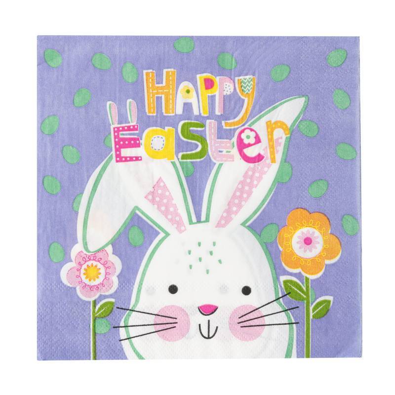 Guardanapo Folha Dupla Estampado Páscoa Coelhinho Roxo 33x33