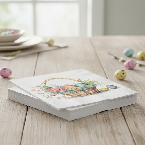 Guardanapo Papel Páscoa Cesta Ovos Coloridos 33x33cm 20 Uni