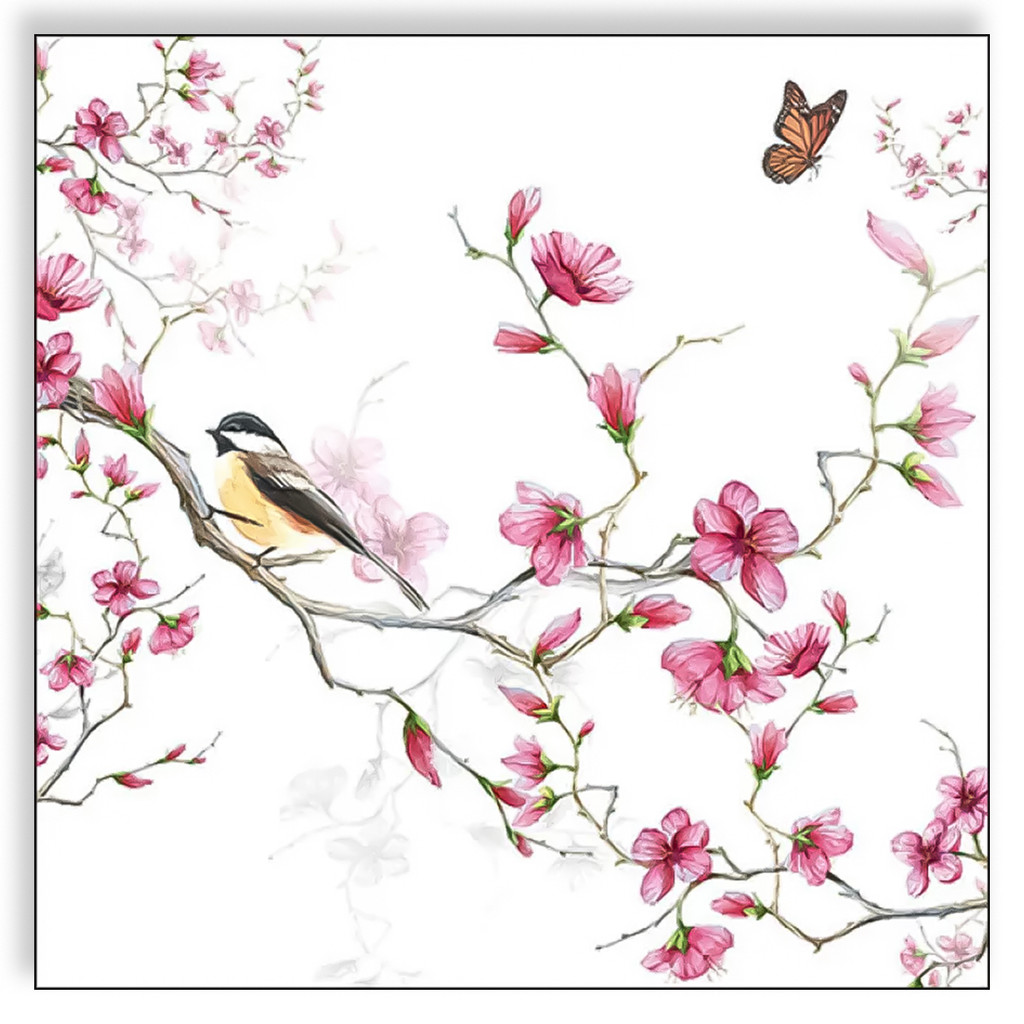 Guardanapo Para Decoupage Ambiente 33X33Cm Com 2 Unidades - Pássaro e Flor Branco