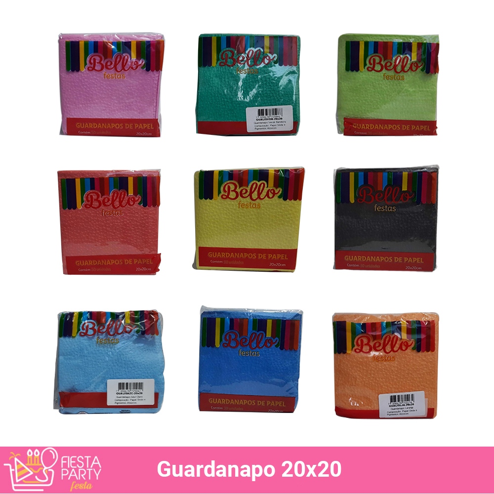 Conteúdo: Guardanapo 20x20 Liso Bellofestas VARIAS CORES c/50 un - MELHOR PREÇO Material: Papel Seda e Pigmentos Atóxicos Utilização: Ideal para servir seus convidados e completar com a cor de acordo com sua festa Dimensões: Altura: 11cm Largura: 11cm Comprimento: 4,5cm * Imagens ilustrativas, as cores podem alterar conforme o seu monitor * Medidas aproximadas Guardanapo colorido, Guardanapo de festa, Guardanapo de papel para festa