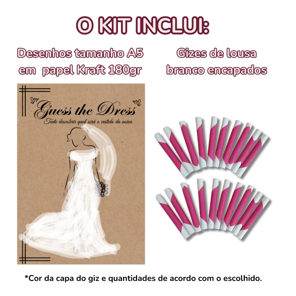 Guess The Dress - Kit completo com Giz - Brincadeira Adivinhe o Vestido da Noiva para Chá de panelas