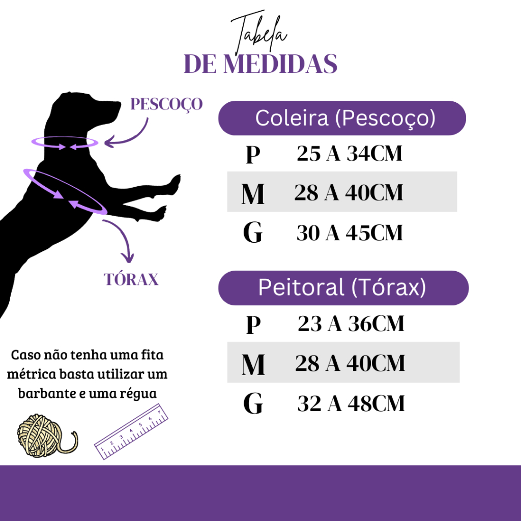 Guia Anti Puxão coleira e peitoral luxo cachorro 🔴 Confira a seguir: Detalhes específicos do produto , tabela de medidas, vantagens de adquirir da nossa marca, ETC... O passeio com seu pet é uma das horas mais importantes do dia dele, não só para sua saúde física e mental, mas também para seu momento de lazer e diversão. Sabendo disso, projetamos o KIT DE LUXO, que além de deixar seu pet 100% SEGURO E CONFORTÁVEL, não deixa de lado a sua extrema luxuosidade, com designs modernos e exclusivos. 🔴Peitoral: Este peitoral é confeccionado com fita de seda importada resistente e durável, sendo costurado por máquinas travetes industriais, o que garante uma costura firme e segura em todas as partes do produto. Suas peças combinadas trás um aspecto de elegância incomparáveis, sem contar a sua praticidade e segurança, Além disso, o peitoral é totalmente ajustável, permitindo que você adapte o tamanho conforme o crescimento ou a necessidade do seu pet. 🔴Guia: As costuras são altamente reforçadas, garantindo a durabilidade e a resistência do produto mesmo em condições de uso intensivo. Este guia é projetado com um mosquetão de base giratória articulado de 360 graus, proporcionando total liberdade de movimento ao seu cachorro durante os passeios. Além disso, o mosquetão giratório evita torções no guia, proporcionando uma experiência mais confortável e sem embaraços para você e seu pet. 🔴Coleira: Fabricada de fita de seda importada trazendo cores vivas e vibrantes, acompanha um abotoador super resistente em formato de ossinho, um regulador muito fácil de usar para ajustar como preferir, um pingente exclusivo todo resinado, e por último mas não menos importante um lindo acabamento emborrachado em formato de patinha. 🔴TABELA DE MEDIDAS🔴 Tamanho P (PEITORAL)- Regulagem máxima:36Cm Regulagem mínima: 23Cm Tamanho P (COLEIRA PESCOÇO) - Regulagem máxima:34Cm Regulagem mínima: 25Cm Tamanho M (PEITORAL) - Regulagem máxima:40Cm Regulagem mínima: 28Cm Tamanho M - (COLEIRA PESCOÇO) - Regulagem máxima:40Cm Regulagem mínima: 28Cm TAMANHO G (PEITORAL) - Regulagem máxima:48Cm Regulagem mínima: 32Cm TAMANHO G (COLEIRA PESCOÇO) Regulagem máxima:45Cm Regulagem mínima: 30Cm 🔴VANTAGENS DE USAR A NOSSA MARCA: - Produto todo regulável de fácil ajuste. -Acabamento impecável. - Qualidade incomparável. - Envio rápido e muito bem embalado. - Fabricação própria. - Muito fácil de usar ⚠️ PRINCIPAIS DÚVIDAS !!!! ⚠️ 🔻 Quando o meu pedido será enviado? * O envio é feito em até 24 horas, extremamente bem embalado para que não tenha nenhum risco de chegar danificado. 🔻 E caso eu compre e o produto fique grande ou pequeno? *Fique tranquilo, nossos produtos vem todos com a opção de regulagem, você pode ajustar conforme preferir e ficar mais confortável no seu bichano. 🔻 Qualquer outra dúvida? * Nos chame no CHAT, responderemos o mais rápido possível!!! 🙂