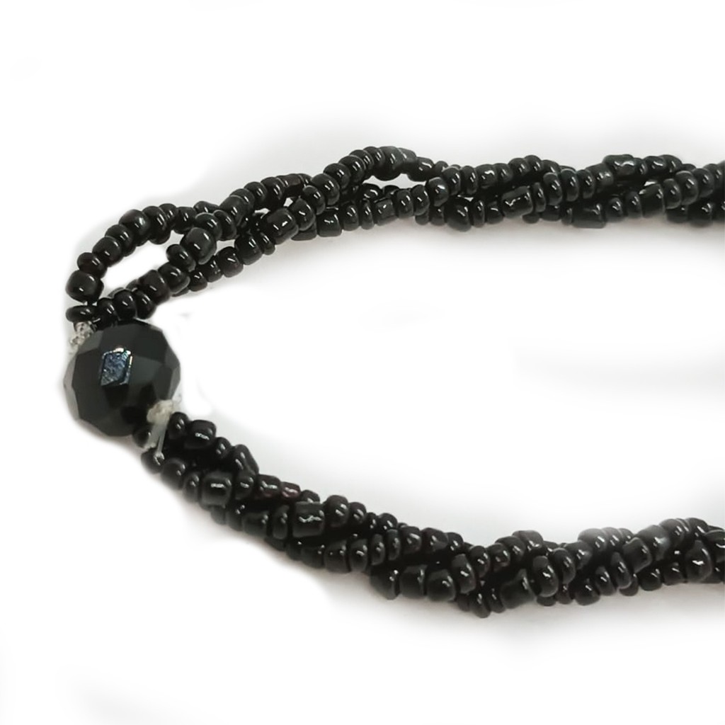 Guia Brajá Preta Exu com Firma 3 Fios Trançado 60cm Umbanda