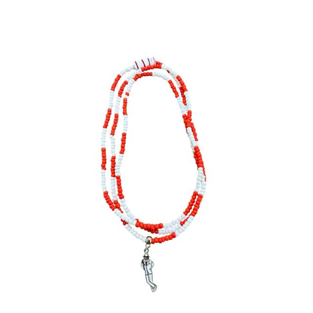 Guia de Zé Pilintra Colar Proteção Umbanda Candomblé Vermelha e Branca 1 fio com pingente e firma